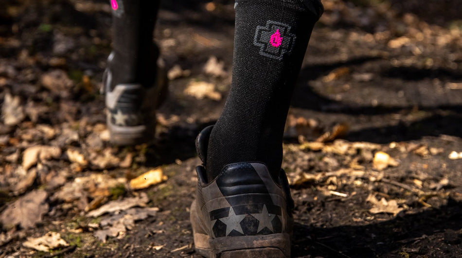 - Rock our unique Muc-Off design Contoured compression supports feet and promotes circulation
