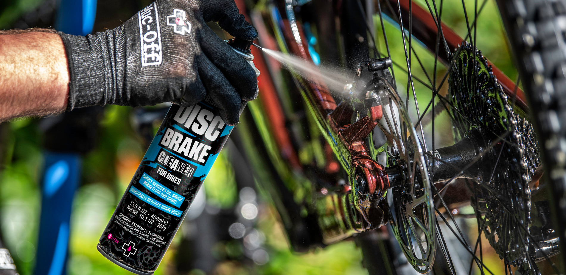 Muc-Off Disc Brake Cleaner air-dries rapidly without leaving any residue, and it’s perfectly safe on rubber, plastic, anodized metals & carbon fibre.