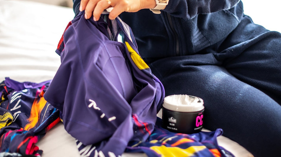 1. Liberally apply cream to areas of your skin that could be a contact point for friction before you ride.
