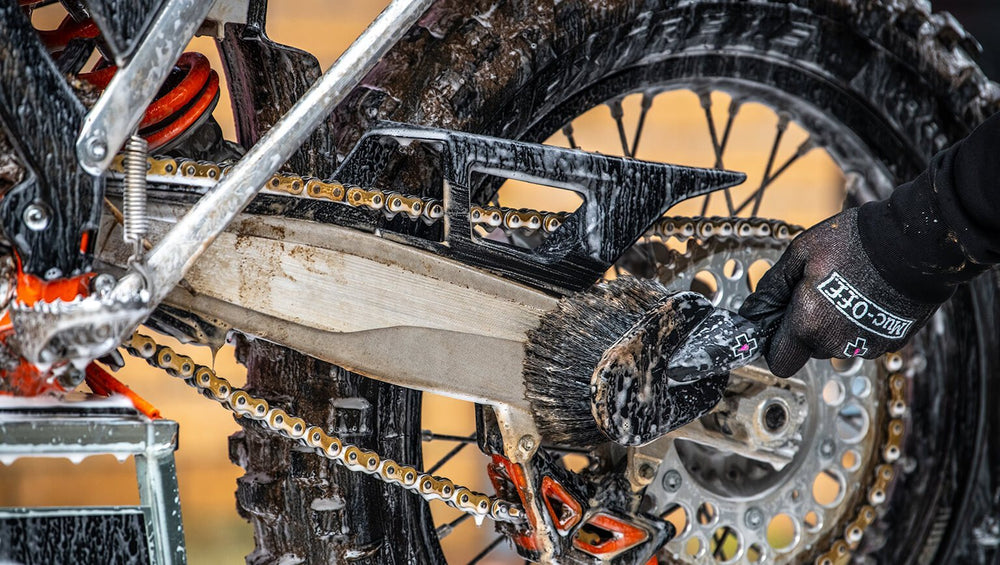 When things have got really gnarly and caked on, get your hands on our Off-Road clean, protect and lube range. Your bike will thank you.