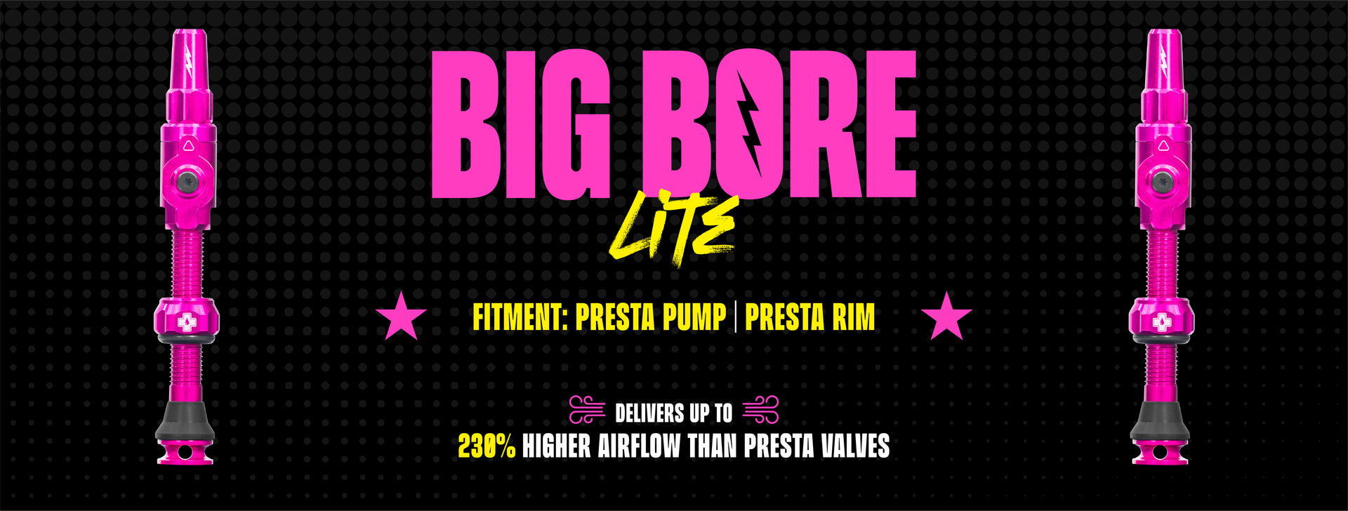 Our Big Bore Lite offers up to 230% higher air flow than traditional Presta valves thanks to the straight through bore design.