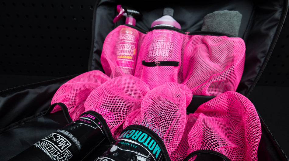 • Internal Mesh Net Pockets – Perfect for stashing bottles of your favourite Muc-Off cleaners, protectants, and other essentials.