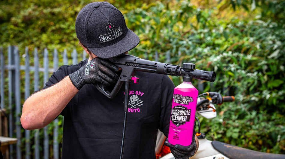 Transform your bottle of Muc-Off Nano Tech Motorcycle Cleaner into thick snow foam and treat your bike to the ultimate deep clean. Our Pressure Washer’s Snow Foam Lance is adjustable, allowing you to spread as much, or as little, foam as you’d like on your bike.