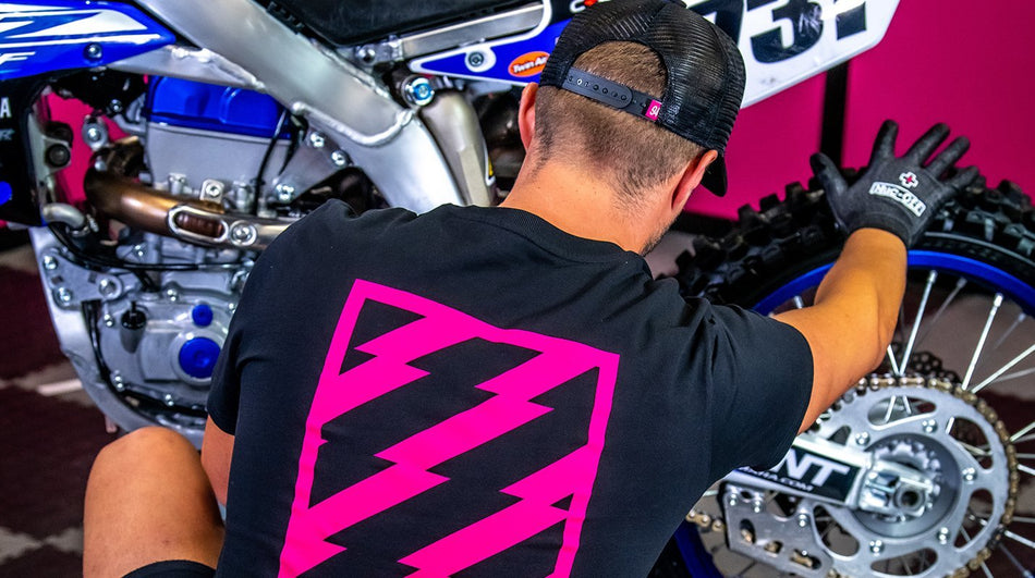 Whilst we can't make you ride as fast as lightning, our bolt tee will electrify your style with a bold print and the iconic Muc-Off pink.