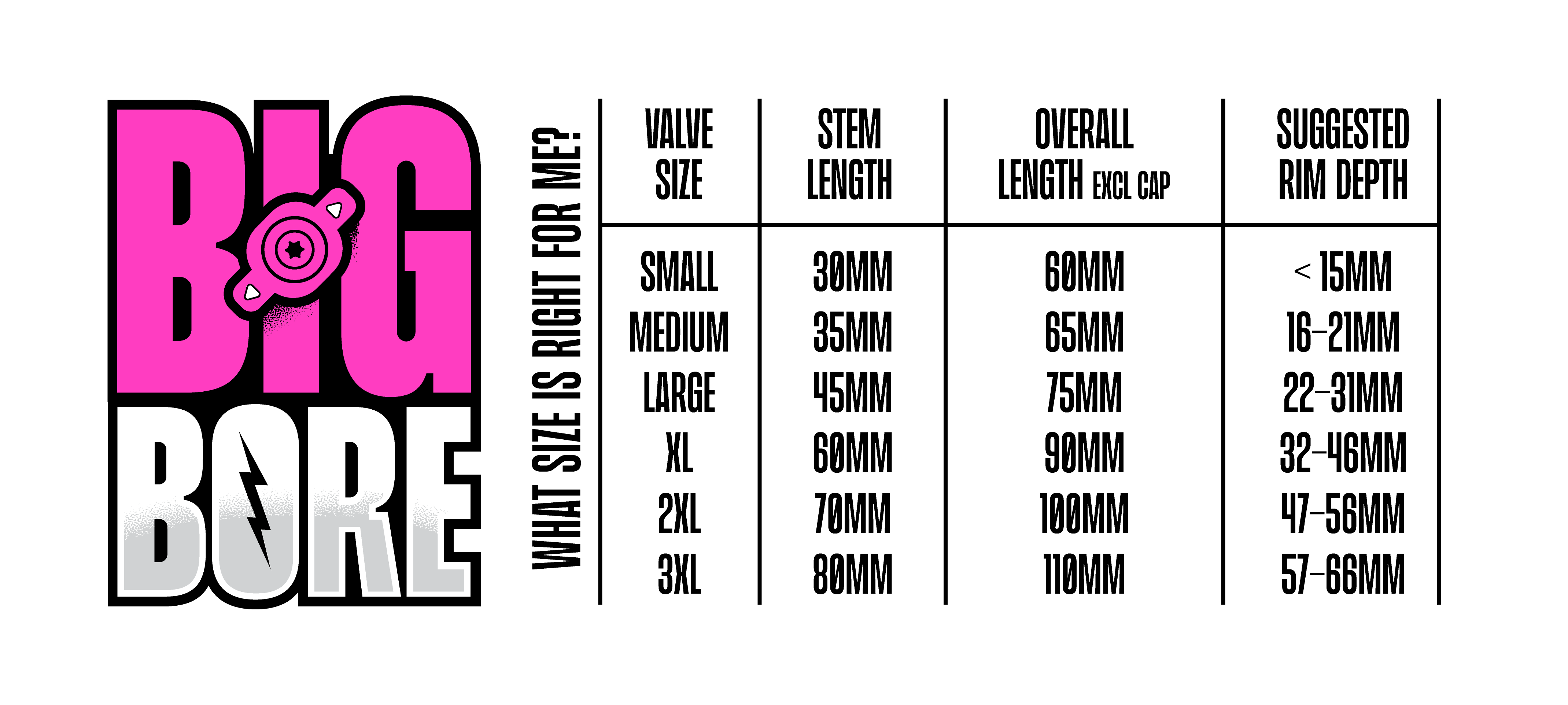 Our Big Bore Lite offers up to 230% higher air flow than traditional Presta valves thanks to the straight through bore design.