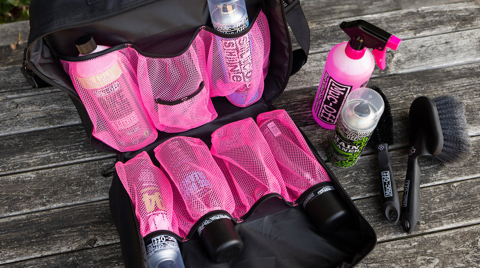 • Internal Mesh Net Pockets – Perfect for stashing bottles of your favourite Muc-Off cleaners, protectants, and other essentials.